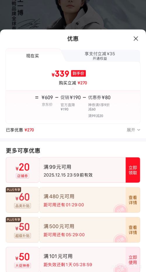 商品到手价289元包邮(页面弹窗9折券到手279元),根据小编提供的优惠信息(plus 限时加码好券160-20/5000-500/2000-200/480-60+ 满101元减50元),下单1件。好价不错过,感兴趣的朋友可以试试!