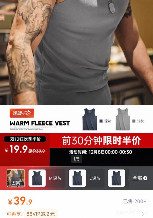 天猫商城8日0点:MADEN 马登 热感绒 无痕背心