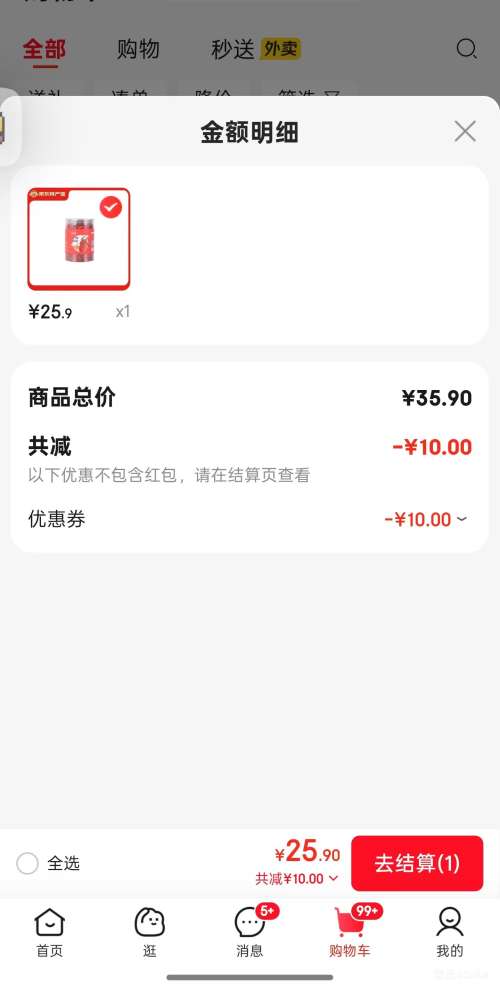 商品到手价25.9元(需领券),根据小编提供的优惠信息(满30减10),下单1件。好价不错过,感兴趣的朋友可以试试!