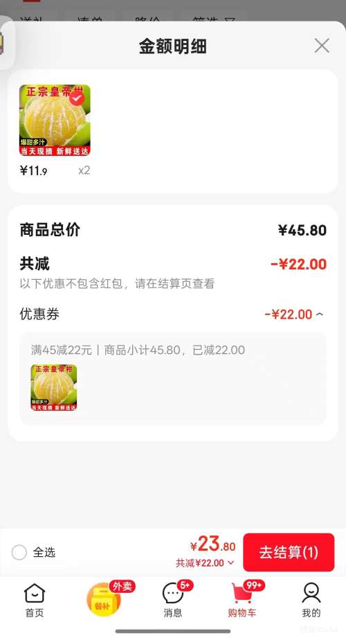 商品到手价23.8元(需领券,合11.90元/件),根据小编提供的优惠信息(45减22元),下单2件。好价不错过,感兴趣的朋友可以试试!