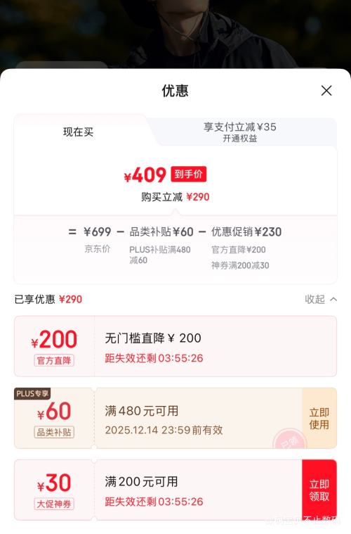 商品到手价409元包邮(需用券),根据小编提供的优惠信息(plus 限时加码好券160-20/5000-500/2000-200/480-60),下单1件。好价不错过,感兴趣的朋友可以试试!