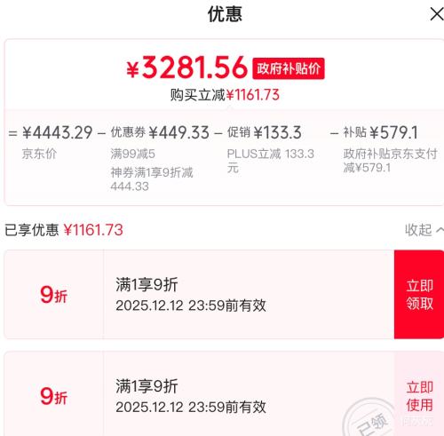 商品到手价3281.56元(需领券),根据小编提供的优惠信息(满1元,打9折+家电-政府补贴15%/20%-部分地区可领+慢津贴7.55元),下单1件。好价不错过,感兴趣的朋友可以试试!