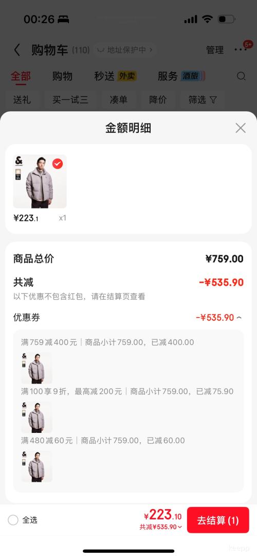 商品到手价223.1元包邮(需领券),根据小编提供的优惠信息(满759-400元+plus 限时加码好券160-20/5000-500/2000-200/480-60+满100打9折),下单1件。好价不错过,感兴趣的朋友可以试试!