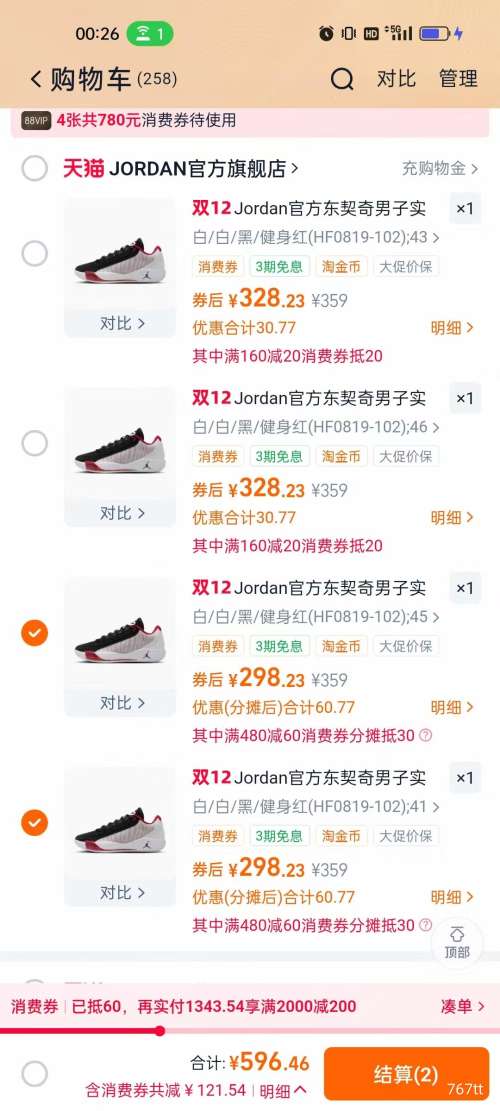 88vip 双12 88折/9折 780元消费券 至高抵(20/60/200/500)