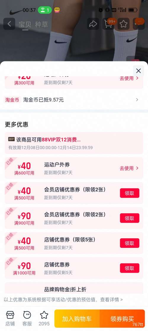 88vip 双12 88折/9折 780元消费券 至高抵(20/60/200/500)