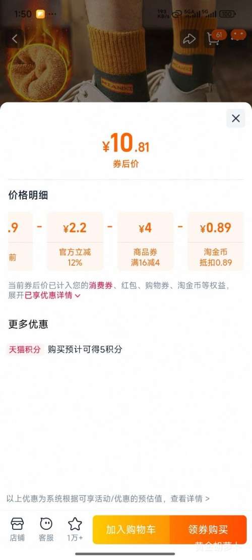 商品到手价10.81元+0.89元淘金币,根据小编提供的优惠信息(优惠券+满16减4+如何使用淘金币抵扣),下单1件。好价不错过,感兴趣的朋友可以试试!
