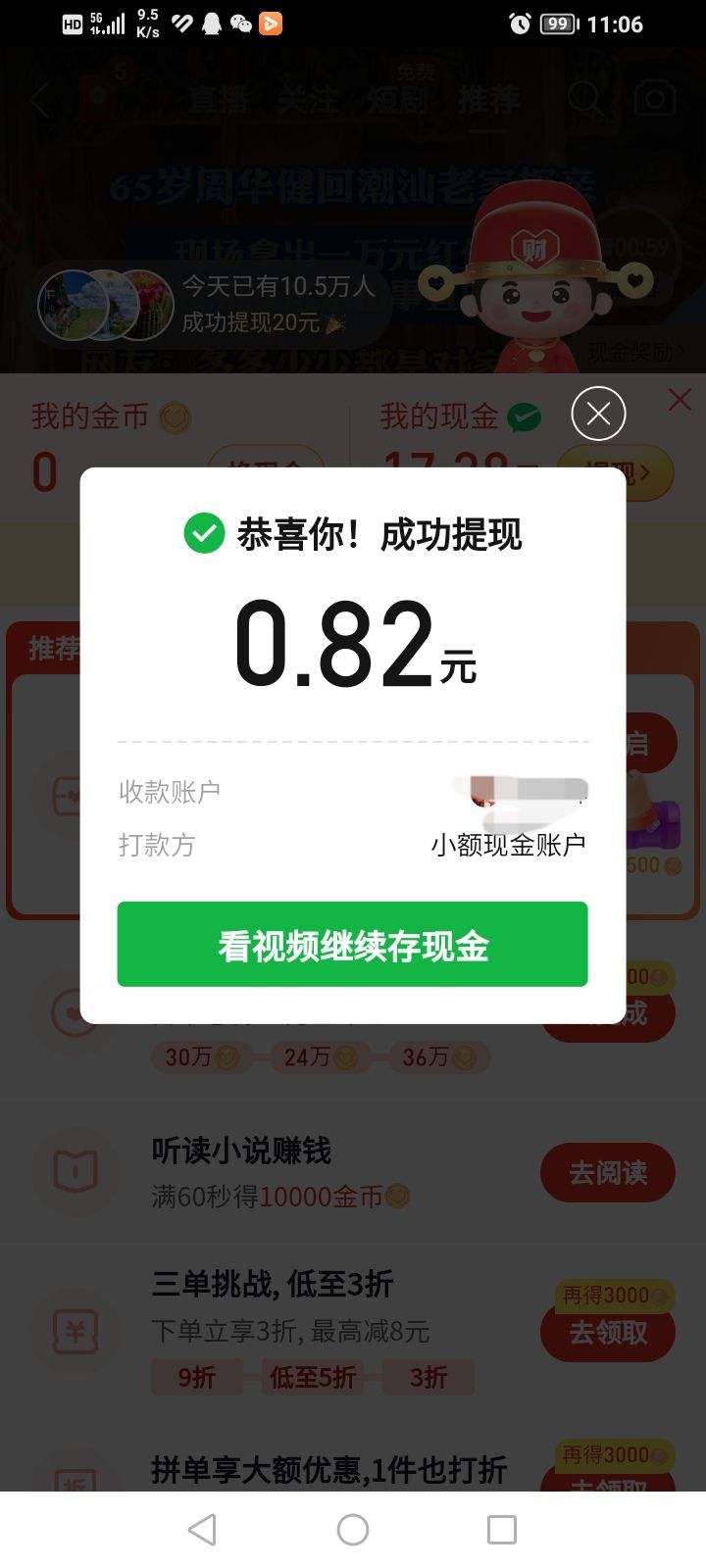 拼多多拼多多下端看视频签到得现金红包,连续签到必得9.9现金红包,实测目前得0.82