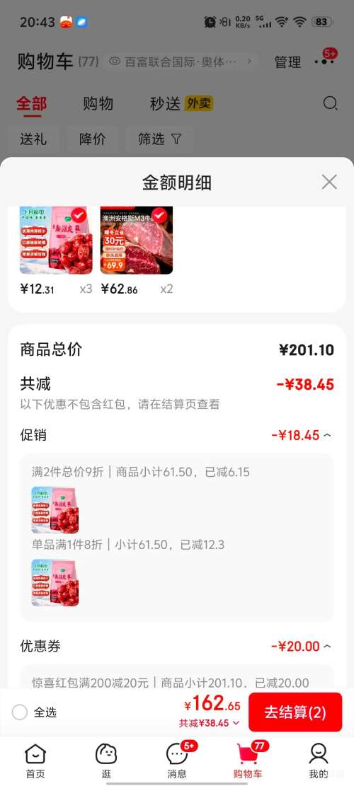 商品到手价125.72元(需领券、需凑单,合62.86元/件),根据小编提供的优惠信息(凑单品+ 双12主会场 惊喜红包 200-20*6张),下单2件。好价不错过,感兴趣的朋友可以试试!