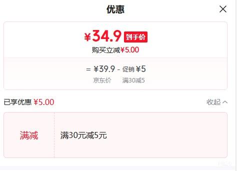 商品到手价34.9元,下单1件。好价不错过,感兴趣的朋友可以试试!