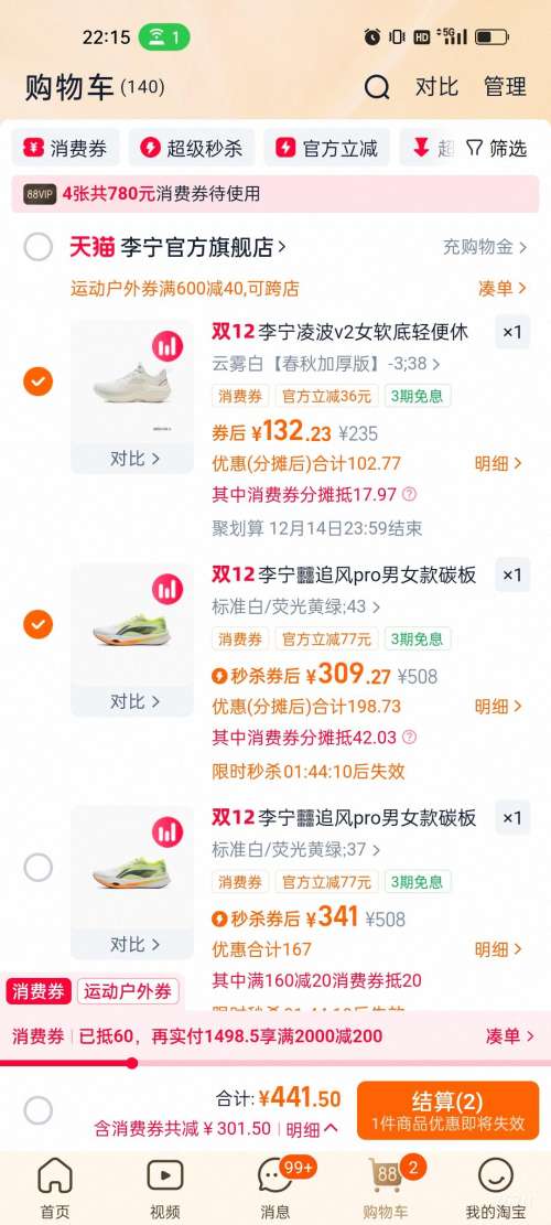 88vip 双12 88折/9折 780元消费券 至高抵(20/60/200/500)