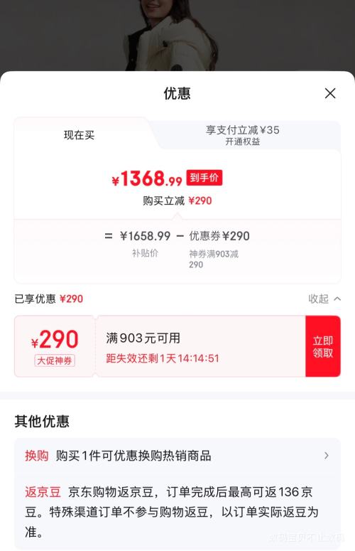 商品到手价1368.99元包邮(需用券),根据小编提供的优惠信息(满903元减290元),下单1件。好价不错过,感兴趣的朋友可以试试!
