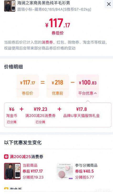 商品到手价117.17元(需凑单),根据小编提供的优惠信息(优惠券+凑单品+88vip 年货精选周(200-25/480-60/2000-200)+百亿补贴金刚券-9折/8折+如何使用淘金币抵扣),下单1件。好价不错过,感兴趣的朋友可以试试!