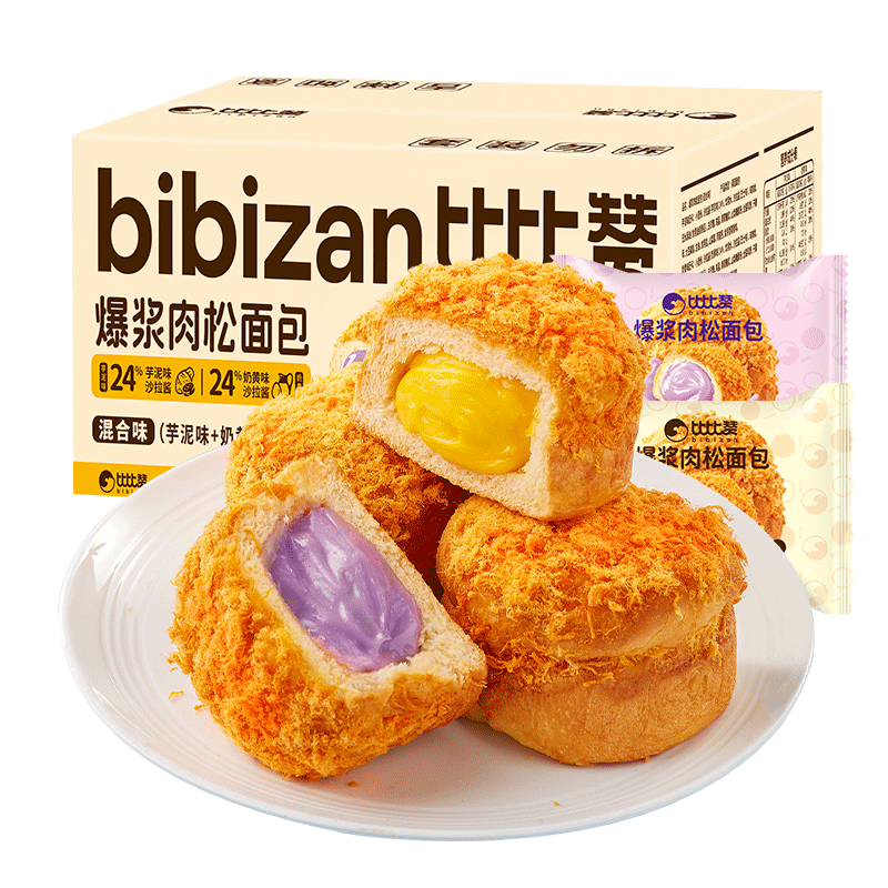 京东自营比比赞 爆浆肉松面包 芋泥奶黄混合装 420g 早餐点心休闲零食