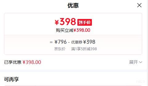 商品到手价398元,根据小编提供的优惠信息(1件5折),下单1件。好价不错过,感兴趣的朋友可以试试!