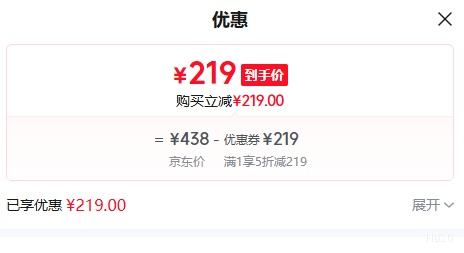 商品到手价219元(需领券),根据小编提供的优惠信息(1件5折),下单1件。好价不错过,感兴趣的朋友可以试试!