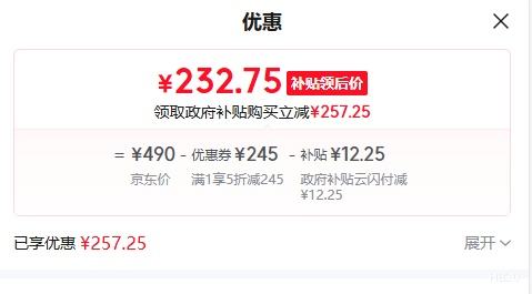商品到手价232.75元(需领券),根据小编提供的优惠信息(1件5折),下单1件。好价不错过,感兴趣的朋友可以试试!