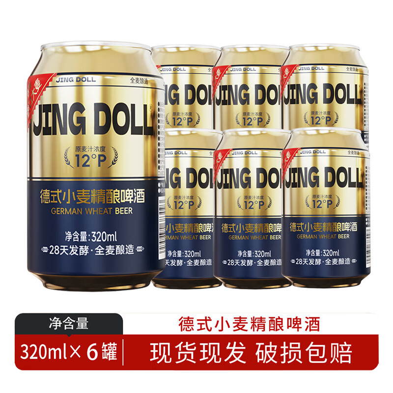 鲸都鲜酿 JING DOLL 精酿啤酒 全麦酿造 320ml*6罐塑膜装